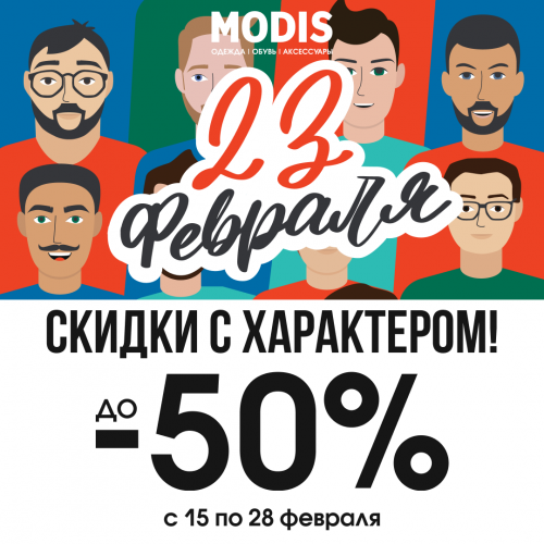 Скидки до 50% в магазинах MODIS на выделенный ассортимент только с 15 по 28 февраля!